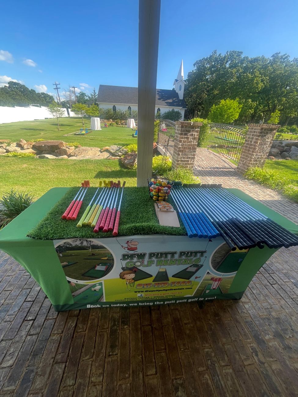 “Mobile Miniature Golf located in Fort Worth Thins is a great addition to Dallas wedding receptions, family reunions, and backyard barbecues with friends. To reserve your mobile Interactive Mini Golf Course Rent for your next party or event INCLUDES: Set up and Delivery of 9 Holes, putters, golf balls, Scorecards, and Golf Pencils, an Attendant may also be added at an additional fee. mobile golf rentals in Fort Worth Dallas Burleson Tx Weatherford Tx Grand Prairie Tx Benbrook Tx Keller Tx Grapevine TX, Plano”